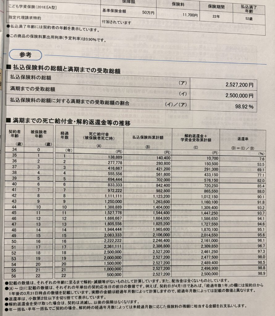 子が生まれてから高校卒業するまでの18年間で保険料を払い、大学進学時に教育費用としてまとまったお金を受け取れる、いわば積み立てのようなもの。
